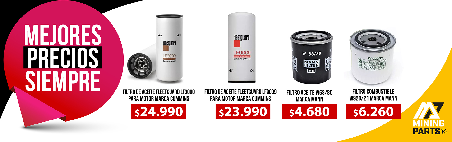 Filtros ORIGINALES - Fleetguard - Mann - Hk - Baldwin - Fg Wilson - Tecfil. Contamos con más de 8.000 Códigos. En MINING PARTS CHILE encontrarás todos los filtros al mejor precio. Llámanos!